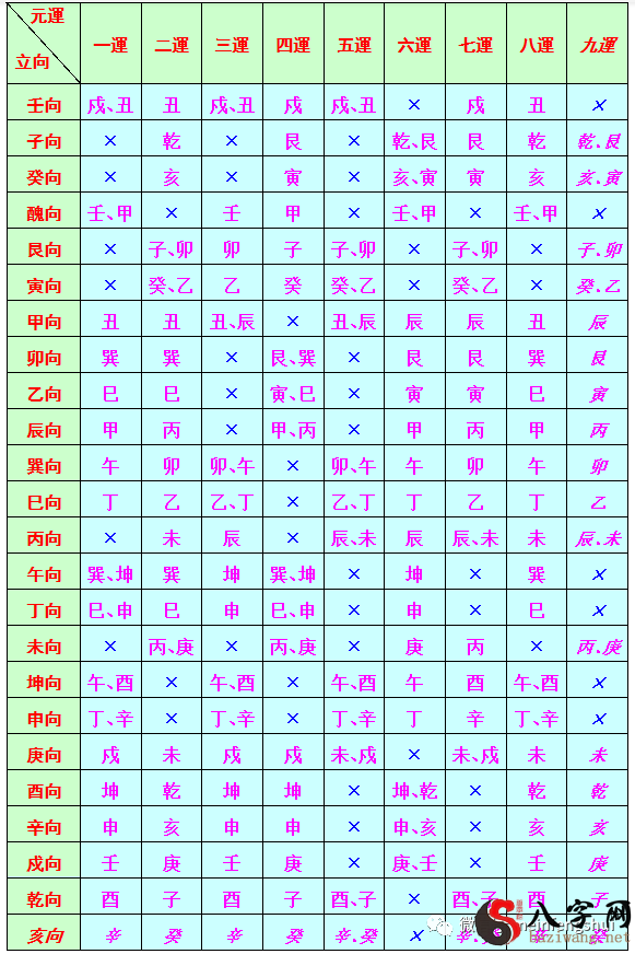 3、能用大门与不能用大门,只要看大门之宫的运星相匹配后天性卦宫同元龙属阴逆飞就为能用;假如遇阳顺飞则不能用。
